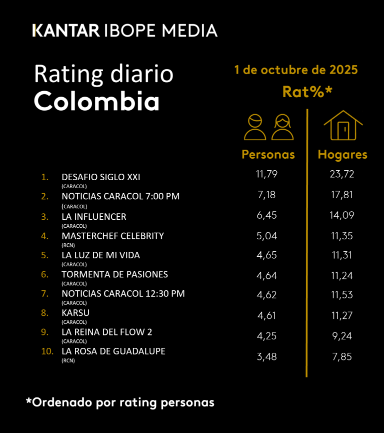 Rating TV – 01/10/2025